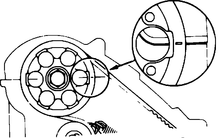 Fig. 6 Aligning line mark on camshaft timing sprocket with top end of cylinder head. Camry models: