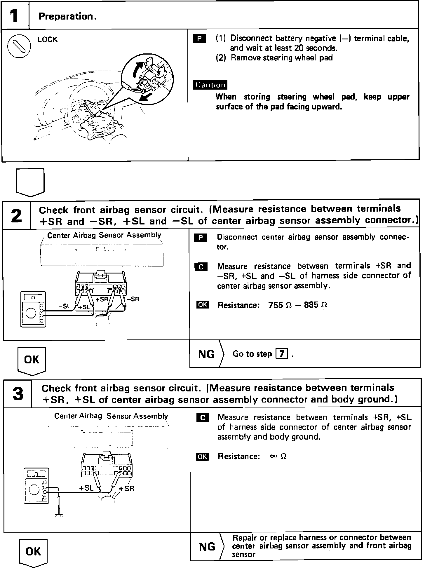 Fig. 27 Diagnostic Code 11 (Short In Squib Circuit Or Front Airbag Sensor Circuit, Part 1 Of 6). Celica, MR2 & Supra: