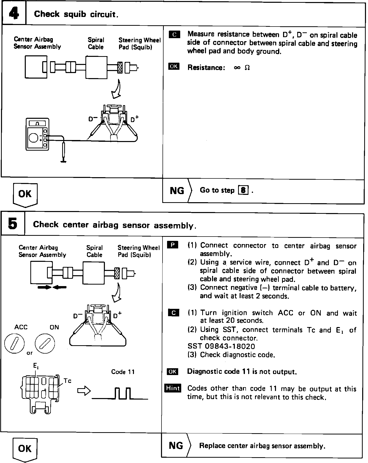 Fig. 27 Diagnostic Code 11 (Short In Squib Circuit Or Front Airbag Sensor Circuit, Part 4 Of 6). Celica, MR2 & Supra: