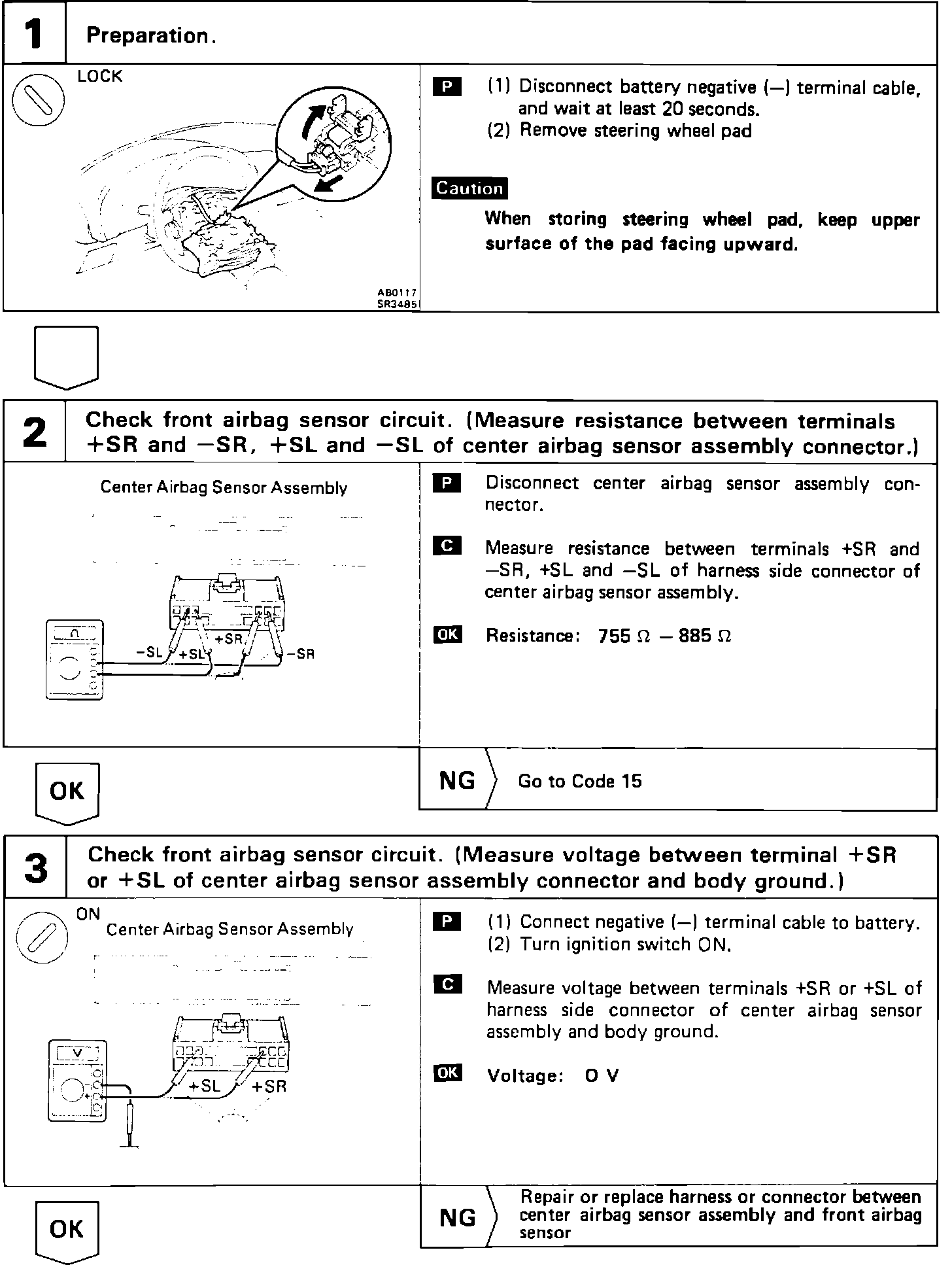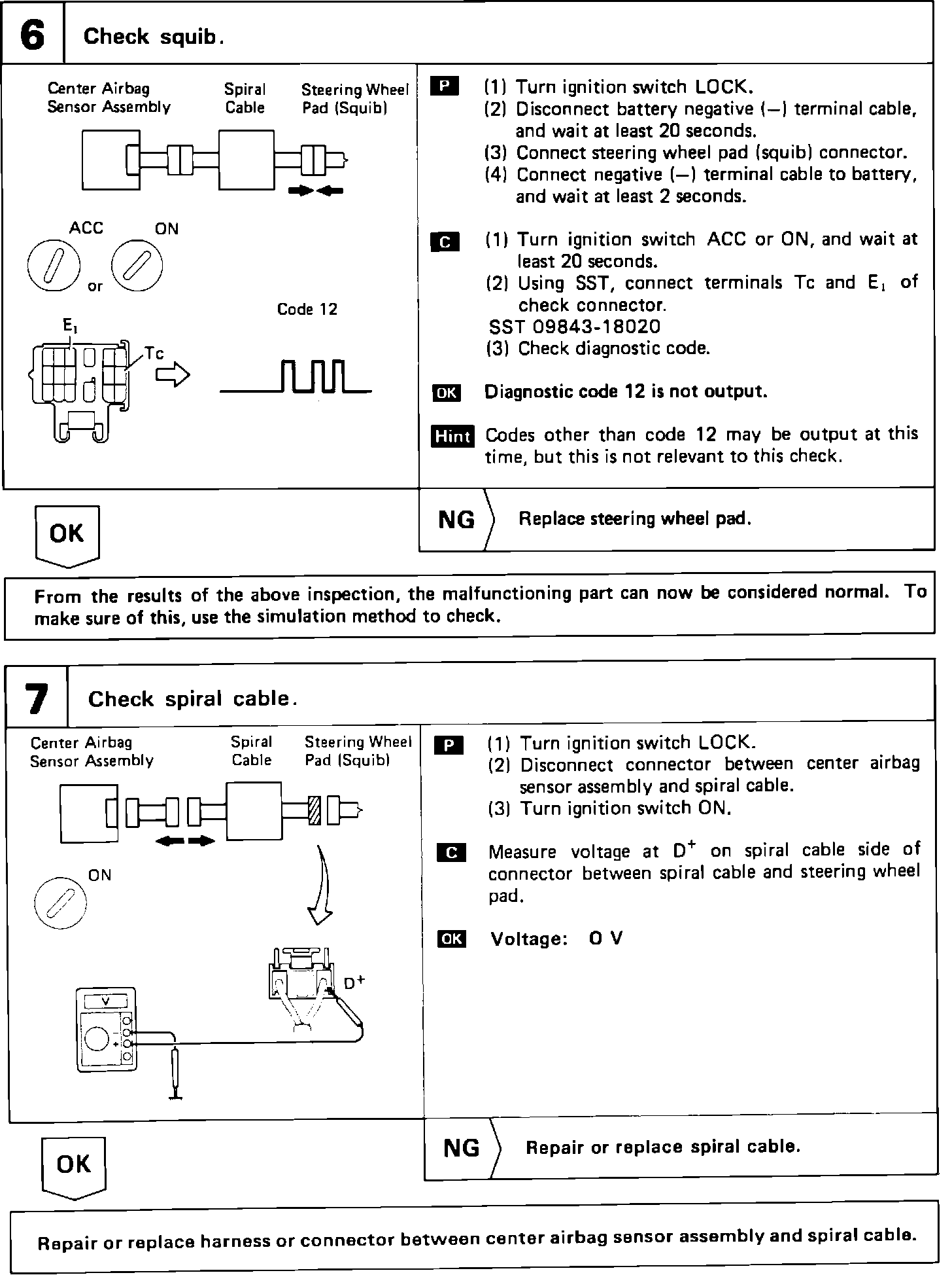 Fig. 28 Diagnostic Code 12 (Short In Squib Circuit Or Front Airbag Sensor Circuit, Part 1 Of 5). Celica, MR2 & Supra: