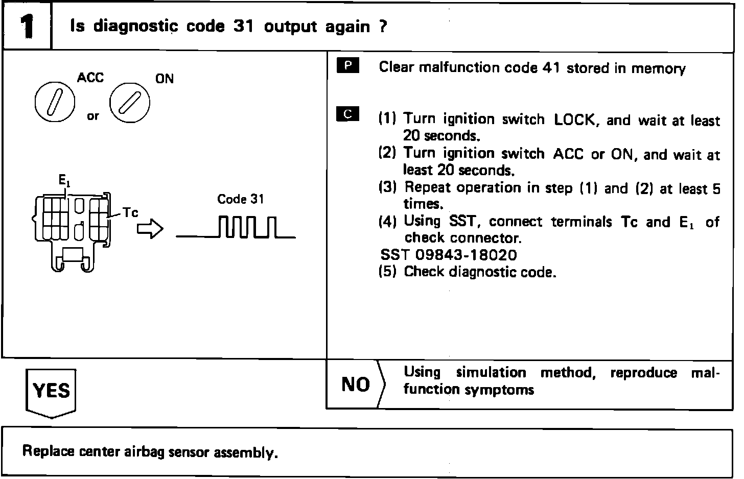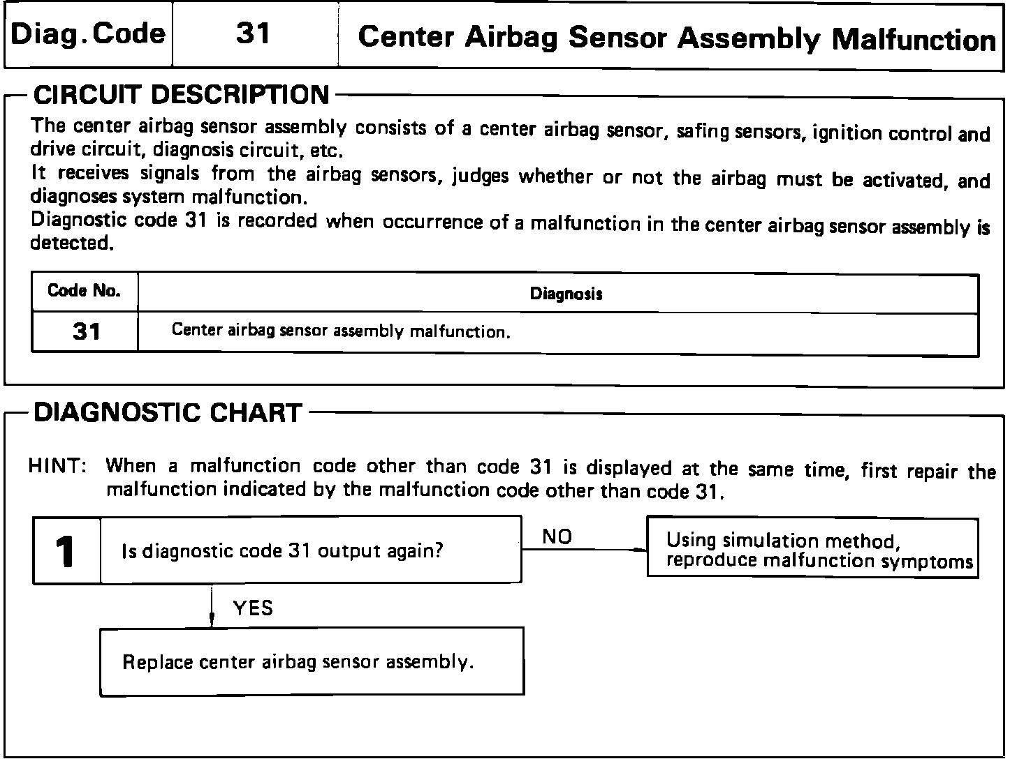 Fig. 33 Diagnostic Code 31 (Center Airbag Sensor Assembly Malfunction, Part 1 Of 2). Celica, MR2 & Supra:
