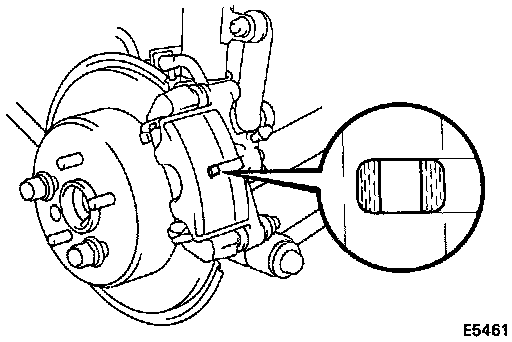 NOTE: If a squealing noise occurs from the brakes while driving, check the pad wear indicator. If there are traces of the indicator contacting the rotor disc, the brake pad should be replaced.