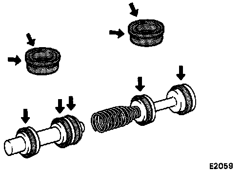 CAUTION: Be careful not to damage the rubber lips on the pistons.