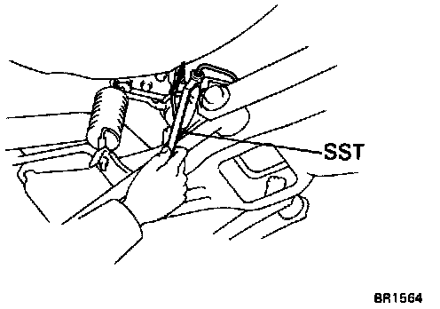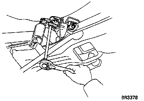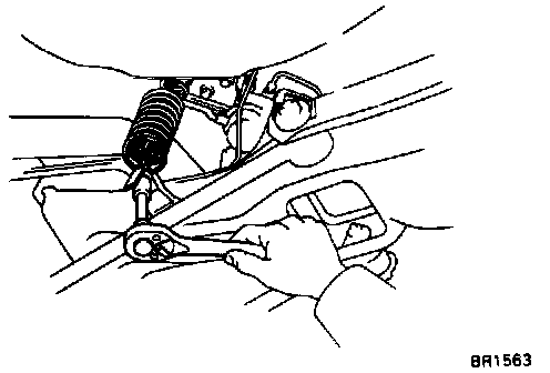 Remove the adjusting nut and disconnect the spring from the rear suspension arm.