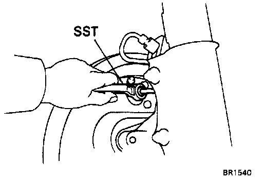 Using SST #09751-3601 disconnect the brake line. Use a container to catch the brake fluid.