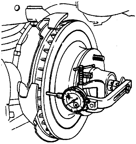 - Measure the rotor with a micrometer and a dial indicator. Resurface or replace the rotor if runout exceeds 0.004" or if thickness variation exceeds 0.0005" when measured at several places of equal distance from rotor edge.