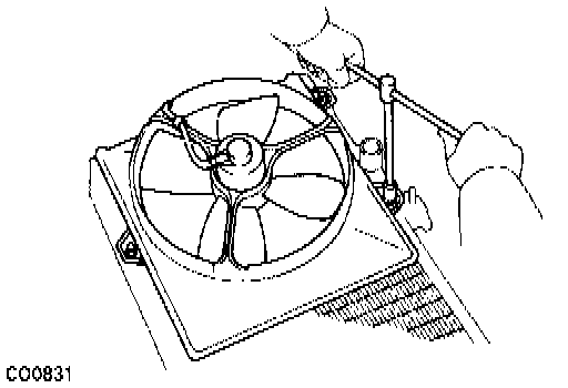 14. Remove the three bolts and separate the radiator and electric cooling fan.