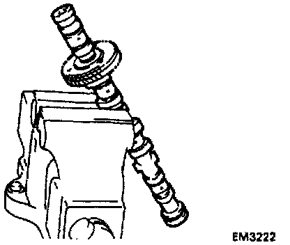 1. Mount the hexagon wrench head portion of the camshaft in a vise.