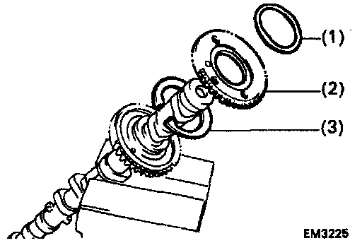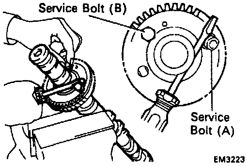 2. Insert a service bolt (A) into the service hole of the camshaft sub-gear.