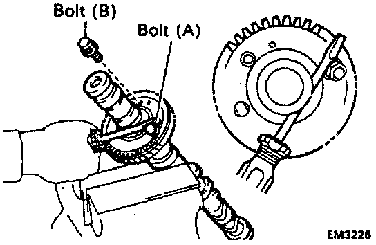 4. Insert a service bolt (A) into the service hole of the camshaft sub-gear.