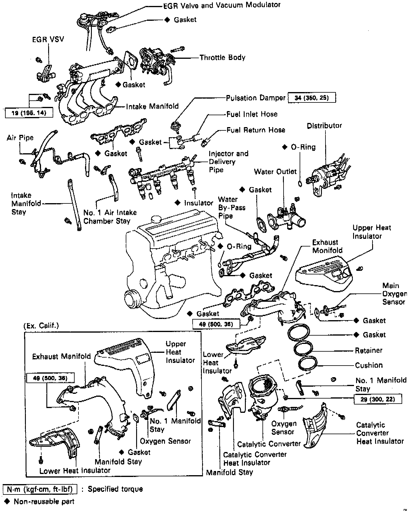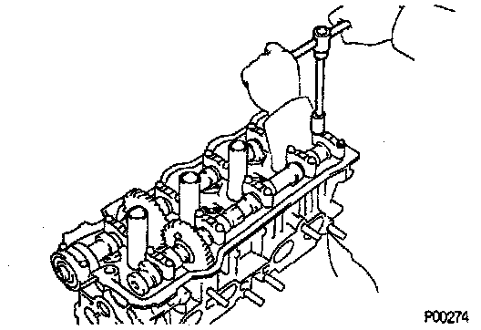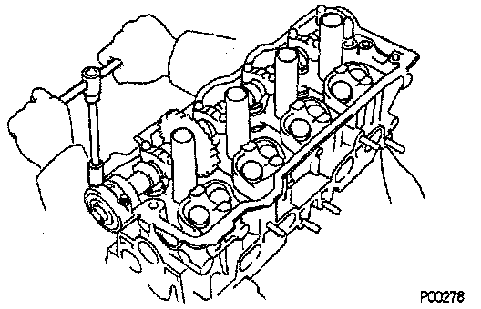 NOTE: When removing the camshaft, make sure that the torsional spring force of the sub-gear has been eliminated by the above operation.