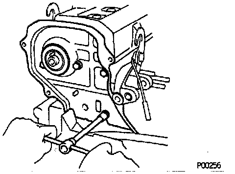 ^ Support the timing belt, so the meshing of crankshaft timing pulley and timing belt does not shift.