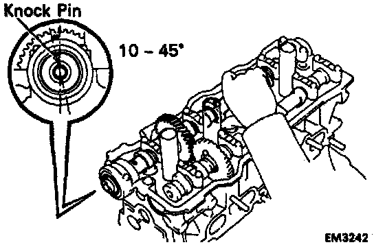 a. Set the knock pin of the intake camshaft at 10-45° BTDC of camshaft angle.