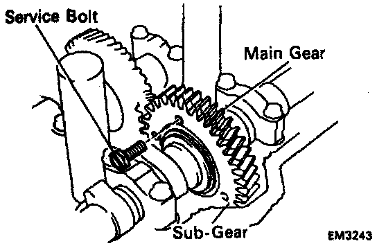 b. Secure the exhaust camshaft sub-gear to drive gear with a service bolt.
