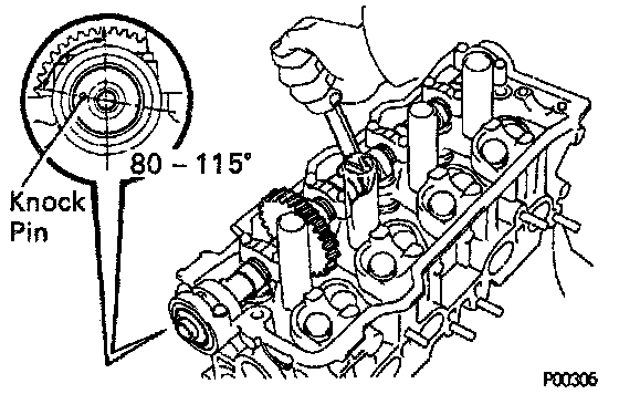 a. Set the knock pin of the intake camshaft at 80-115° BTDC of camshaft angle.