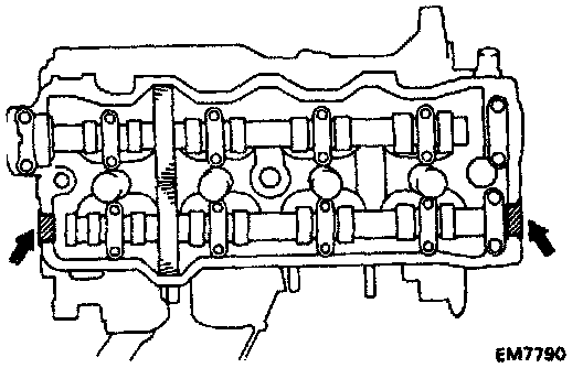 NOTE: It is very important to replace the camshaft in the bearing journals evenly while tightening bearing caps in the subsequent steps.
