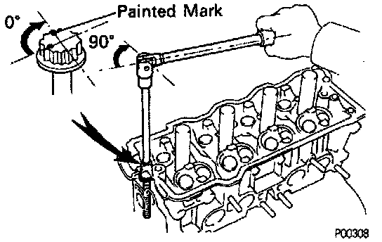 d. Retighten the cylinder head bolts, turn 90°, in the numerical order shown.