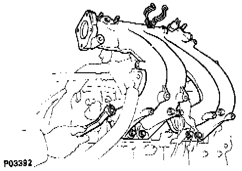 a. Install a new gasket, the exhaust manifold and catalytic converter assembly with the six new nuts. Uniformly tighten the nuts in several passes.