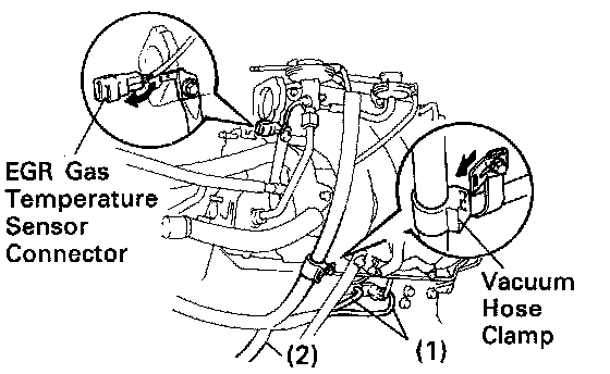Disconnect EGR gas temperature sensor connector, and disconnect the connector from the bracket.