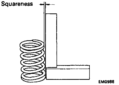 1. Using a steel square, measure the squareness of the valve spring.