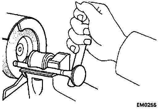 4. Check the surface of the valve stem tip for wear. If the valve stem tip is worn, resurface the tip with a grinder or replace the valve.
