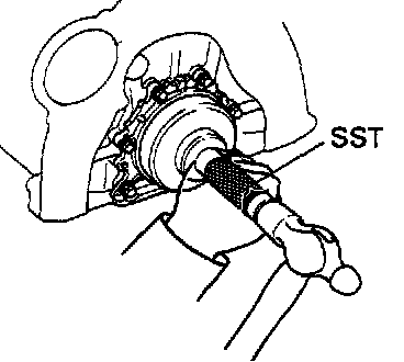 (d) Using SST and a hammer tap in the oil seal until its surface is flush with the rear oil seal retainer edge. SST 09223-63010