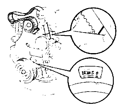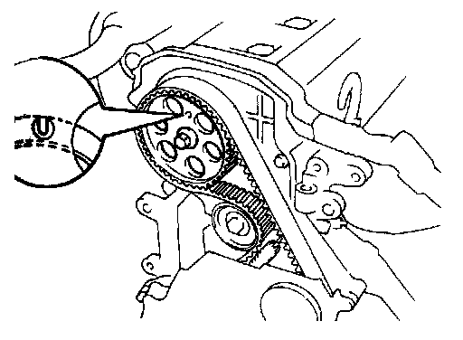 Draw a direction arrow on the timing belt in the direction of engine revolution), and place matchmarks on the timing belt an crankshaft timing pulley.