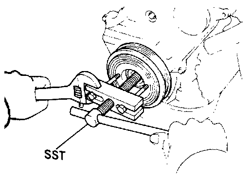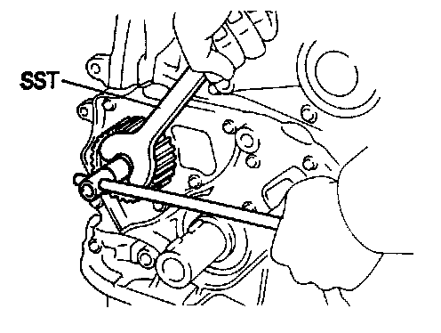 (a) Using SST 09213-54015 (09214-00030) and 09330-00021, remove the pulley bolt.