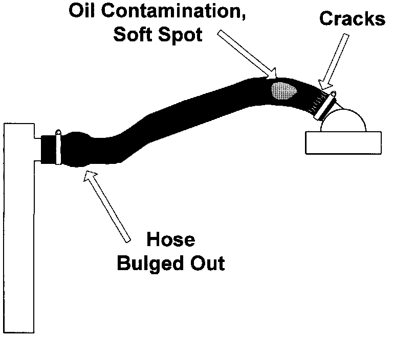 - Hard or brittle hoses, as the hoses age the rubber looses its resiliency and becomes brittle. The hoses need to be able to flex to compensate for the movement of the engine.