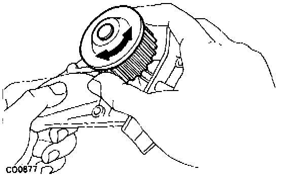 1. Inspect water pump, turn the pulley and check that the water pump bearing moves smoothly and quietly.