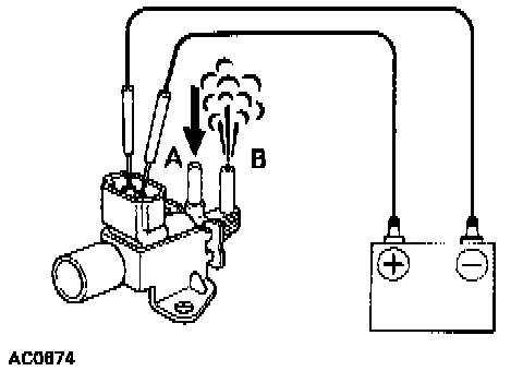 3. Check for short circuit using and ohmmeter, check that there is continuity between each terminal and the VSV body.