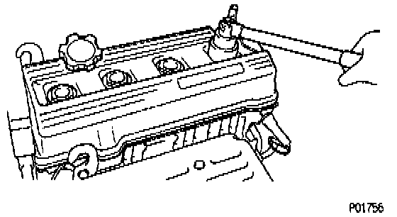 2. Disconnect the PCV hoses, loosen the two wire harness clamp bolts (No. 2 timing belt cover) mounting bolts, remove the four nuts, grommets, cylinder head cover and gasket.