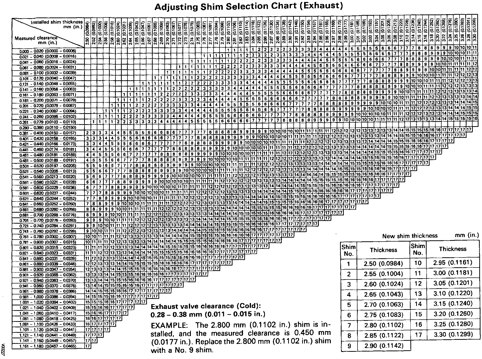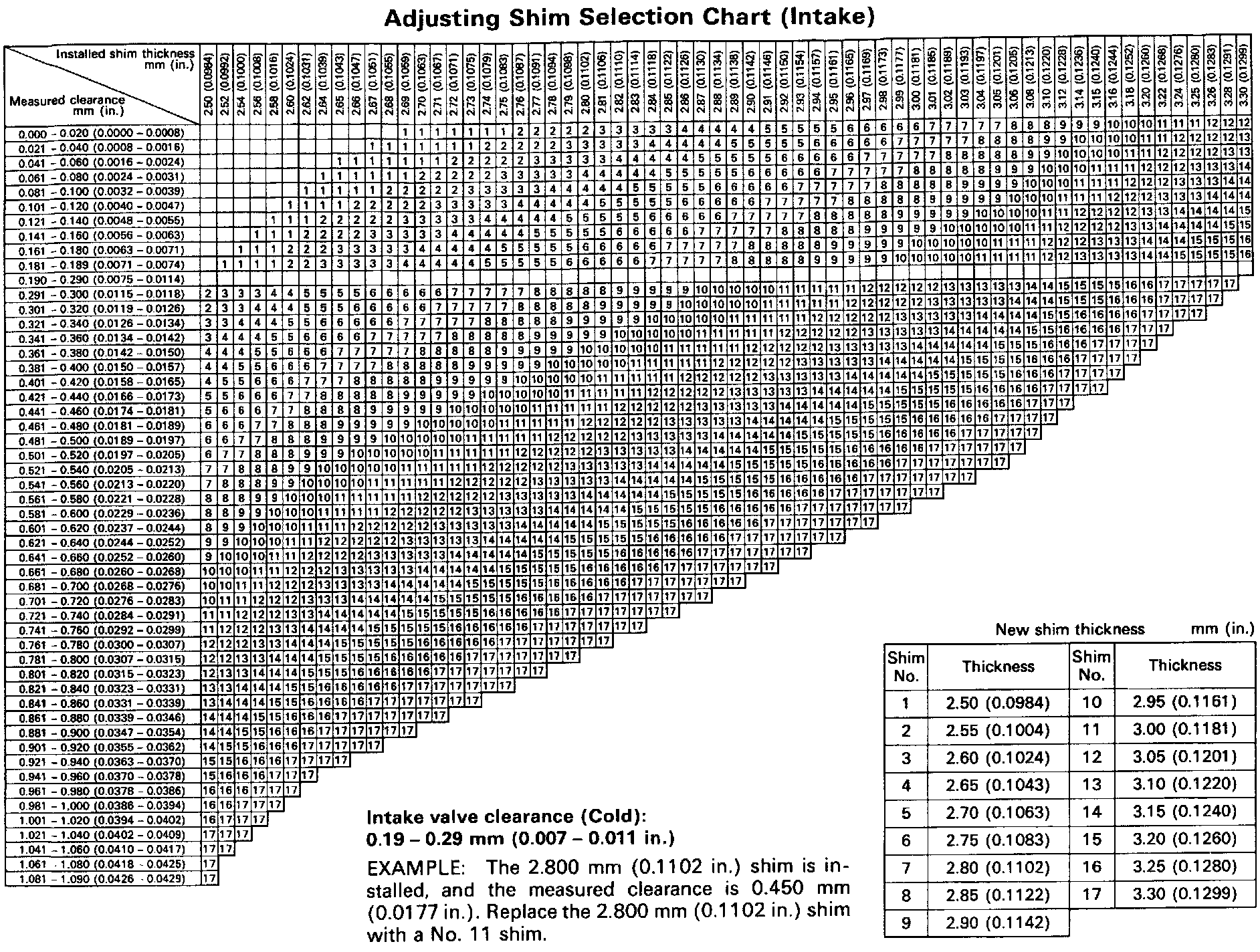 ^ Calculate the thickness of a new shim so that the valve clearance comes within specified value.