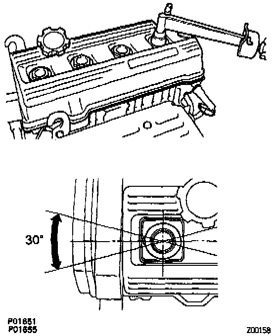 ^ Turn the crankshaft so that the cam lobe for the valve to be adjusted faces up.