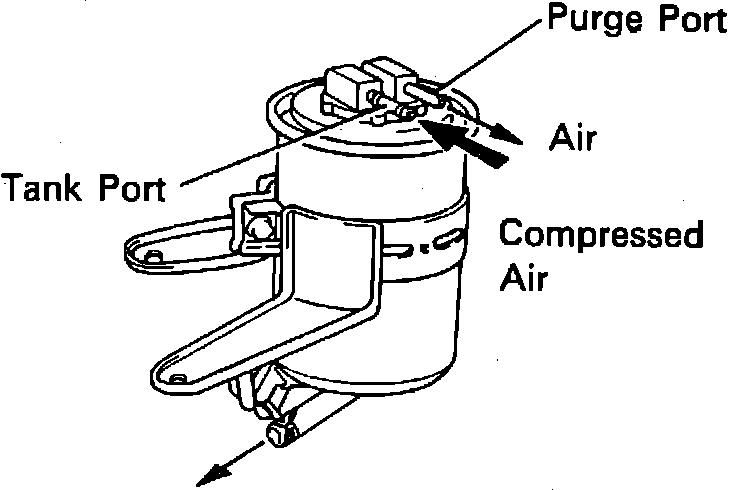 5. Check the canister check valve by blowing air into the purge pipe inlet. Air should NOT flow through other pipes.