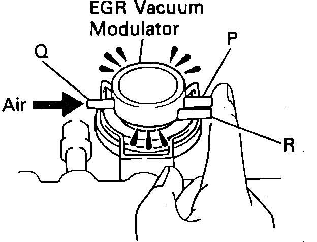 3. Disconnect the vacuum hoses from ports P, Q and R of the EGR vacuum modulator.