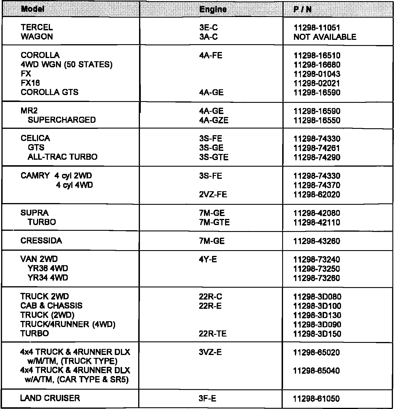 Celica Convertible L4-132 2164cc 2.2L DOHC (5S-FE)