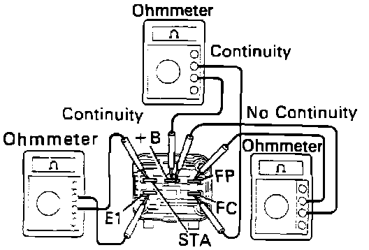 - Using an ohmmeter, check that there is continuity between terminals STA and E1.