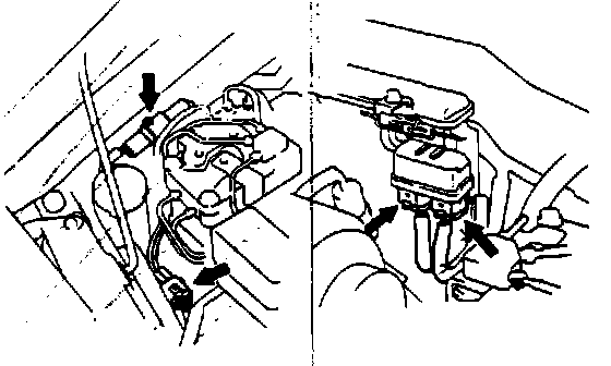 The control relay has two purposes. When energized, the relay provides power to the solenoid valves for ABS operation. However, the solenoid valves do not use this power unless the ABS computer completes the circuit to ground. When the solenoid is not energized, it provides a ground path for the antilock warning lamp circuit. Thus, the antilock warning lamp will light when the solenoid relay loses either power or ground. And when energized, the relay provides power to the brake fluid return pump. This action results in the transfer of brake fluid from the accumulator chambers to the master cylinder reservoir. When the pump motor circuit is energized, a PUMP ON reference voltage is sent to the ABS computer.