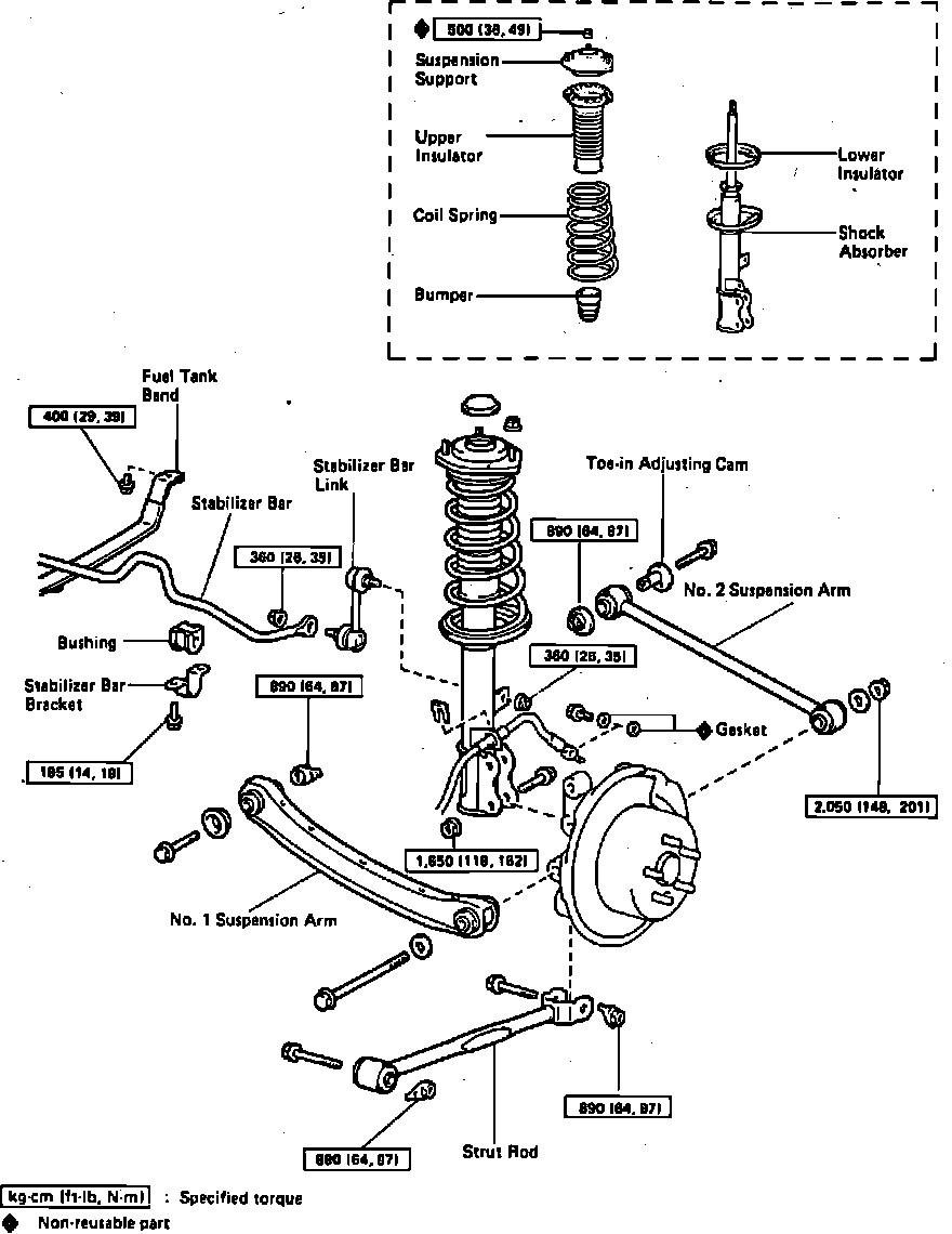 Fig. 5 Exploded View Of Rear Suspension. 1989 Celica Less AWD: