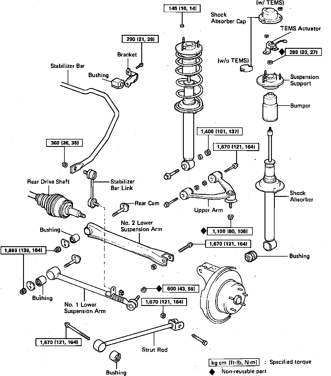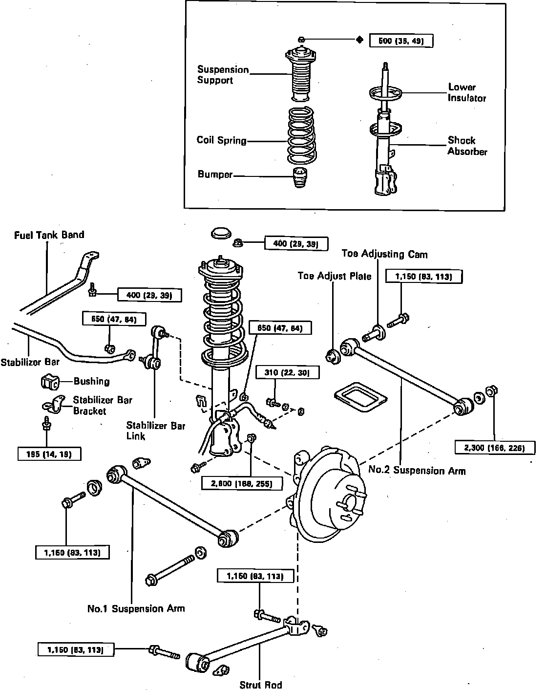 Fig. 8 Exploded View Of Rear Suspension. Celica w/AWD: