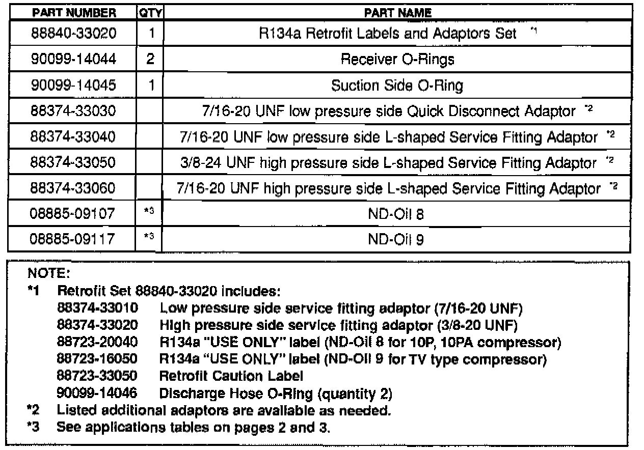 The following information should be used for guidance when retrofitting vehicle air conditioning systems from R-12 to R134a refrigerant.