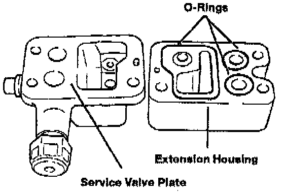 7. Reinstall service valve plate to compressor. Torque bolts to 19 ft.lbs.
