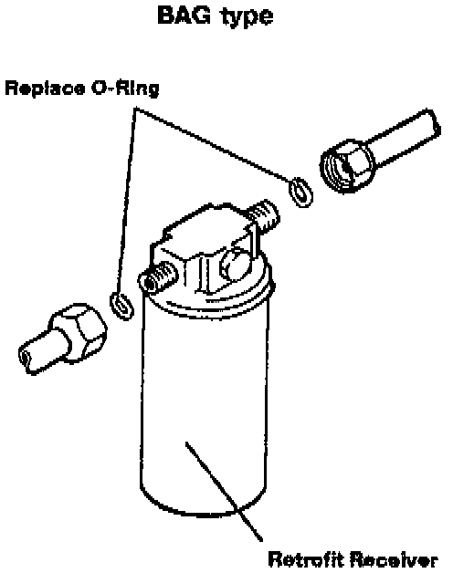 6. Lubricate and install retrofit 0-rings with specified PAG oil (see tables).