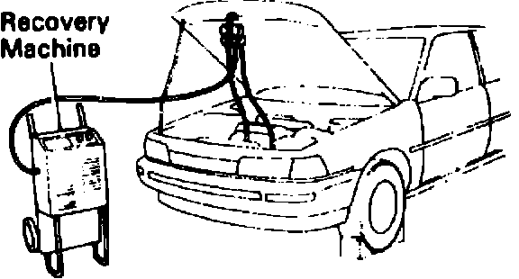 When servicing the A/C system it is mandatory to use a Toyota Approved R-12 refrigerant recovery machine (Toyota P/N 00002-01396-01) or its equivalent, and to use only the minimum amount of refrigerant necessary to test or charge the system.