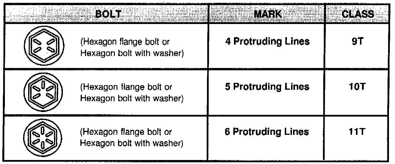 The bolt mark and class identification information is currently not included in the Standard Bolt Torque Specifications found in the Introduction section of each Toyota Repair Manual.