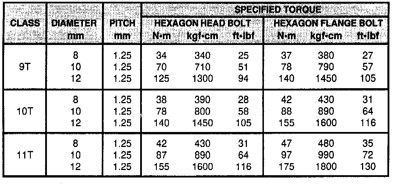 SPECIFIED TORQUE FOR STANDARD BOLTS