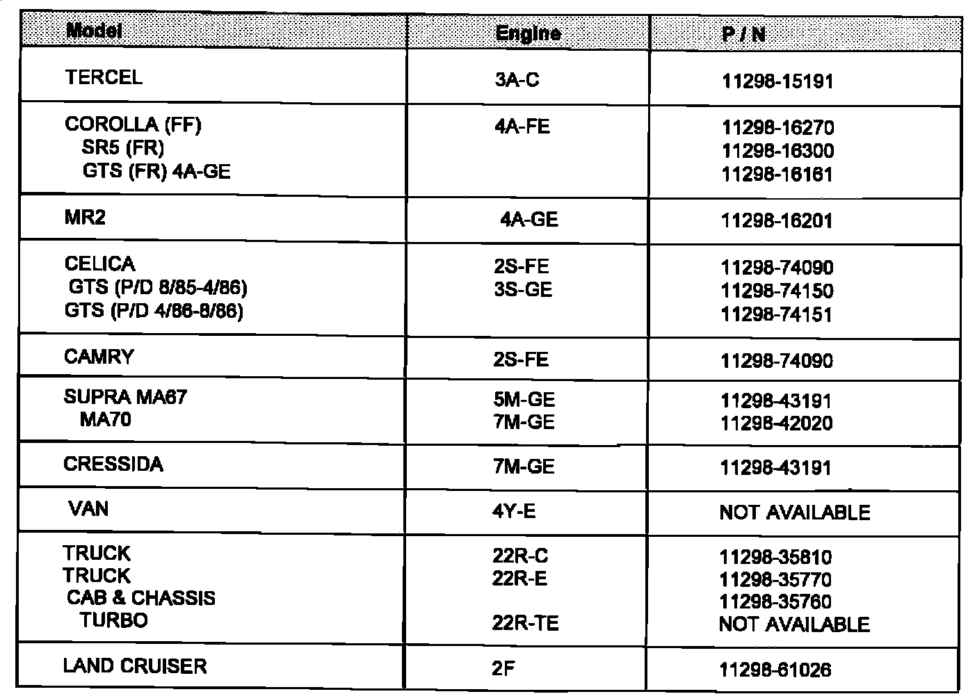 Celica Convertible L4-132 2164cc 2.2L DOHC (5S-FE)
