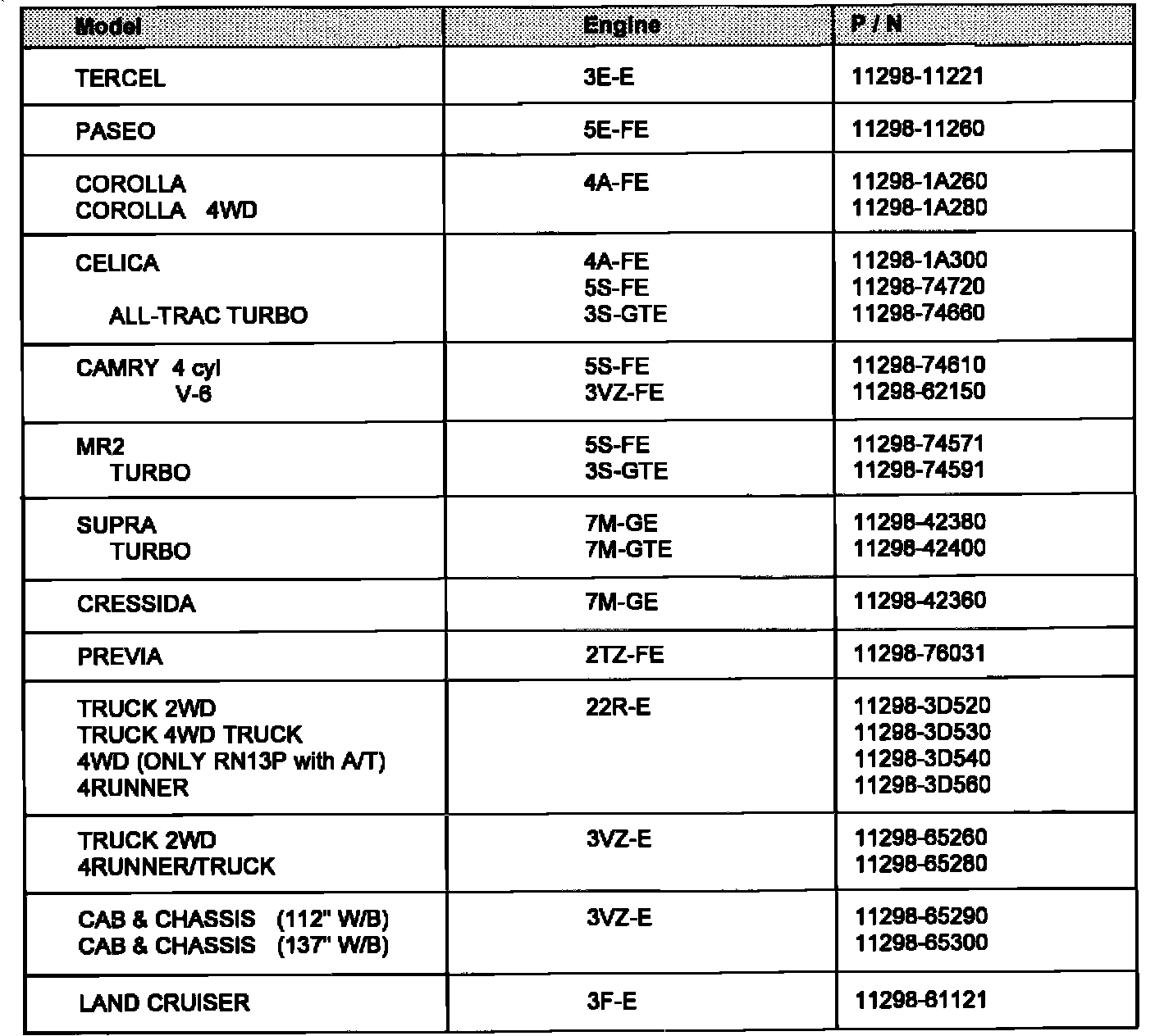 Celica Convertible L4-132 2164cc 2.2L DOHC (5S-FE)