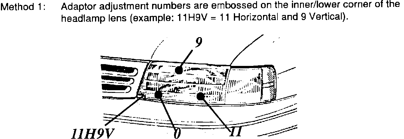 The aerodynamic headlamps used on some Toyota models require an adapter for proper headlamp adjustments. Identification of the correct adaptor settings is essential for obtaining accurate adjustment of these headlamps.
